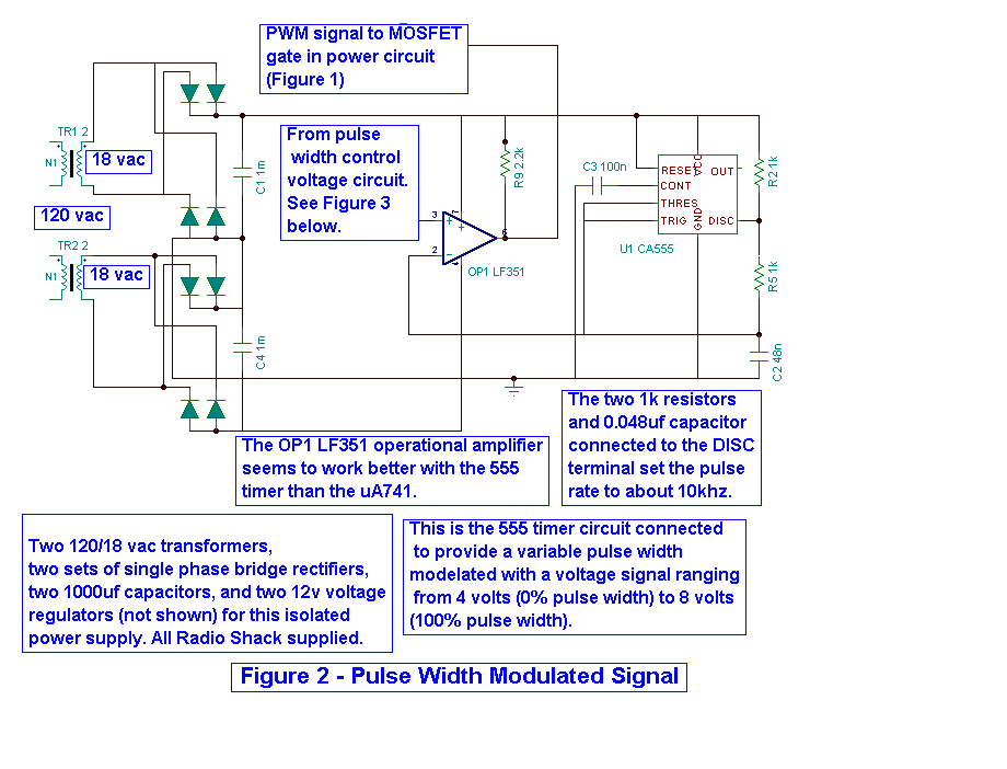 Klaus, Yes, I think a single 120/36 volt center tapped transformer would make the circuit simpler. I had two 120/18 volt transformers on hand and used them. Before that, I tried to use the first two batteries in my 48 volt battery bank and failed to come up with a circuit configuration that didn't short or otherwise mess with TINA II (my circuit analysis program). Thanks for your question. Blessings and peace. Bob BobS |