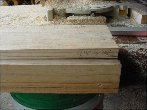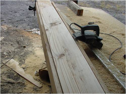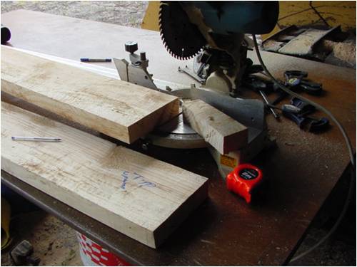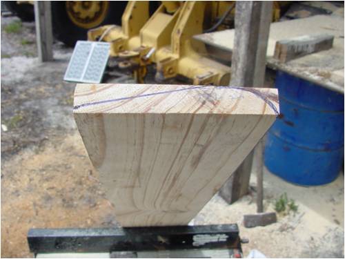 It's been some time since I did the original story on making your blades with a chainsaw. Since then I have had emails from people who did not quite understand how to do it step by step. Even though Imsmooth and Niall and others have video's on the web, it seems to not be enough... so I have decided to do a step by step story on these blades. It also gave me an excuse to see if better ways of doing things could be uncovered.... so here goes. I will preface this by saying that you can make a well twisted/tapered blade to whatever spec you can dream up with the blade calculators on the web, (see Nialls and Imsooth's video's) but my experience is different to what I had expected. The first set I twisted as much as the wood would allow (for 8x2"), and made the taper roughly follow the line of best fit... but similar to the blade calcs with an eye to the constraints imposed by the timbers dimensions. In short, a simple version of as close as I could easily get to the blade calc. I have since changed my mind after mindless hours of watching the mill.... I call it therapy... my wife calls it stupid... I am fortunate that my winds are so good and the exposure so good that it is still at ground level.. so easy to tinker with and watch endlessly.... and still easily do 3kw in mid winds... around the 30 mph range. I have decided to throw the calculator out the window, and design a woeful blade. I did not want a blade that was perfectly tuned to a specific TSR. It is rare to run at that TSR driving a battery bank anyway. I wanted a mongrel, that would perform well at any reasonable wind speed, especially lowish ones, and could not care about the high winds... not a thoroughbred.... I turn it off in high winds. I wanted it poorly tuned to any specific TSR, but able to operate with different parts of it at different wind speeds. So it was wider at the tips than the chart said, it was thicker in the chord than was correct, it had only slight twist, maybe only 10 degrees at the root, and 5 at the tips, and the taper straight from the tip to the hub area (about 400mm from the butt in my case). I was after more torque down low, more profile nearer the tips. and more chord.... and a soda to build. I can make a full set in about 2.5 hrs ready to sand I didn't sand them because they were too wet with resin... sand paper doesn't work then. But the design is so simple, the planer finished them near perfectly anyway. This will take up some of Gizmo's bandwidth.... sorry.
