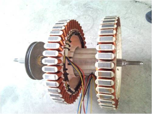 for testing purposes I added a pulley and mounted it into my test bench at work, just to see how much output i could get out of a dual setup. . they are both star wound 2x7c