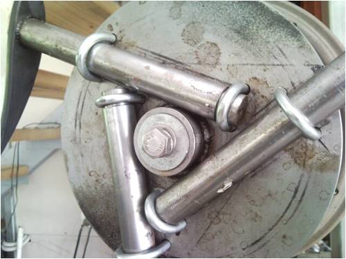 Inserted the round bar into the exhaust tube and mounted all 3 on to the hub, each with two 8 mm u bolts