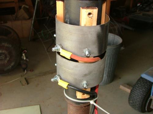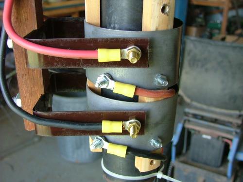 This is what I've come up with so far. The slip rings were made from some scrap zink plated steel I rolled and welded to make a ring. Exhaust tube would be easier, but I used what I had in my scrap pile. I drilled 3 holes at 120deg and a extra hole as the contact.