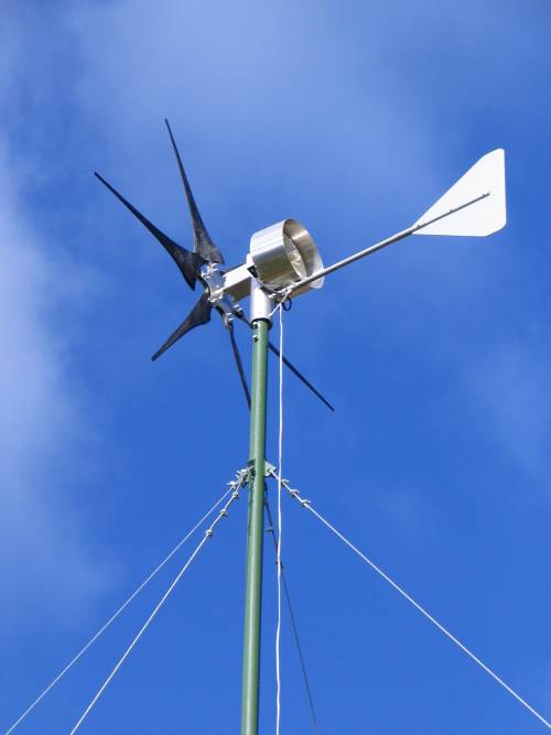 " It's been a while since I spoke to you last but thought I would let you know that I finally got one of my wind generators up. In case you don't remember, I bought a couple of sets of blades from Eco-Innovations and teamed them up to a 80SP with your mounting plates. I think I sent you a copy of the plans a while ago.