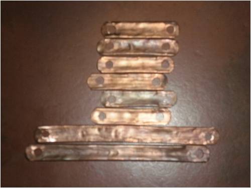 10mm copper would be good. Some, flatten 1/2" copper pipe and drill some holes each end.