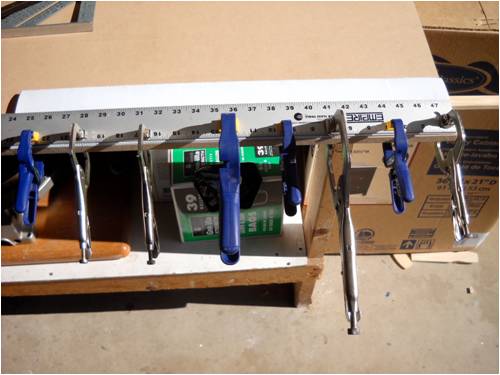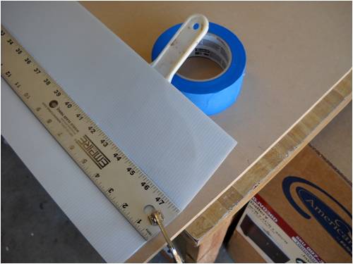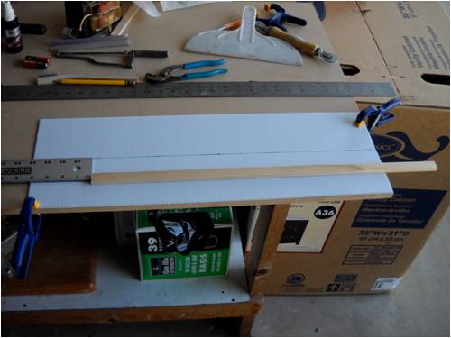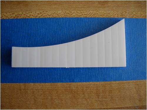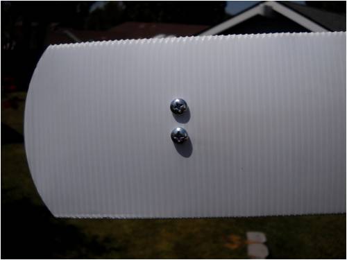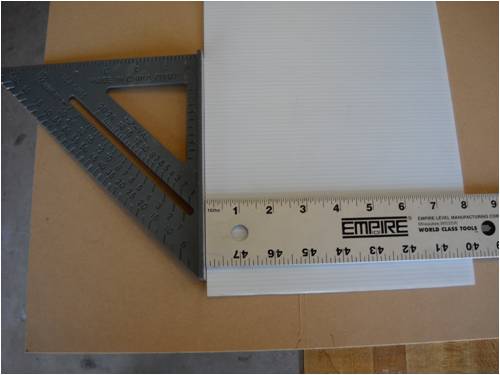 Crew As many of you already know, I make my blades out of a plastic sigh material called Coroflute. In the USA, it's called Cloroplast; same stuff. It's basically the same as corrugated cardboard only it's made from very tough plastic. This is a small piece of the stuff. I'm using the blue tape as a background so you can better see how it's made. Here it is stand on its end. See the little ribs? This is 4mm Coroflute. I use 2mm as do many who build and fly R/C gliders and sail planes. In fact, I'll be building a new plane for myself out of it soon. The plane will feature an 8-foot wing span with one dihedral. The wings will bolt to the welded aluminum fuselage, which will also house the electric motor (for days without thermals), speed control, radio receiver, flight as well as power-assist batteries, servos and anything else I've forgotten. It will use "wingerons" which are merely ailerons (a little flap along the trailing edge of each wing) and a "mixing" radio. With only two servos, it'll go up, down, left, right, roll, etc. Anyway, back to the Coroflute. What I'll do here is post pictures and a running tutorial telling anyone who wants to build their blades the same way I do exactly how I do it. I took pictures all the way through an entire build. For those of you who think these blades are too flimsy, let me set you straight; they're bullet-proof! Each blade consists of a folded and glued single piece of Coroflute sheet and a wood (I used pine since it was lightweight, strong, costs next to nothing and readily available) and some well-placed globs of cyanoacrylate (CA) glue. More on the gluing later. Layout is key here. Once you dab on the CA glue, it's history. You must be accurate in laying out, marking, cutting and gluing. I use a 2' by 4' piece of "MDF" as a cutting and laying-out surface. The Coroflute is held in place using a metal ruler and a vice-grip clamp. This stuff is really slippery, so you have to make sure it's down tight before you draw on, cut or glue it; really important, even crucial step. Accurate measurement means starting in the same place each time. I use a flat surface (carpenter's square here) on one side and I butt both the work and the ruler against the same vertical surface to make sure each is equally places. This shows a sheet of Coroflute cut into a square, which is 8" wide parallel to the plastic ribs and 48" long. It will make two 4" x 24" blades when it's done. The yellow-handled screwdriver is what everyone else uses to crush the coroflute. I do it another (easier!) way: This is what I use. It's the little tool you use to shove the rubber welt into the slot when you re-screen an aluminum window screen. Note it has two ends. We use the rounded end and not the grooved end. This is the end we use and all it's used for is to "crush" one side of the coroflute so it will fold easily along the line. More on that later. Look closely and you'll see a little valley between the two sides of the wheel. This makes two little "knife" surfaces, which will cut the coroflute. We don't want to cut it, just mash it. Use the other end! Really, really, really important: The fold is made so that the ribs of the Coroflute are running front to back. That is, leading edge to trailing edge. This makes for built-in "ribs" as well as adds to the strength of the blade (or wing). The wood spar takes up the load along the length of each blade preventing it from bending under load. So when you're cutting things out, remember which way the ribs are running and don't cut things out the wrong way! Basic Rule: If it folds really easily, you've goofed; start over! Sorry, them's the rules. Note here that there is a metal ruler on EACH side of the coroflute. I did this to show that there needs to be a large flat surface on the back side of the fold or you'll "crinkle" the fold and that's not part of the plan! Here's what I use instead. It's a plastic drywall applicator (less than $1 @ Home Depot). It spreads the bending force over more surface area than if you were to use merely your hands. The next few pictures show how to lay things out prior to making the folds. Pay strict attention that your work is always clamped to the work table. If it slips, you start over; it's that simple. No room for errors with this stuff! This is an end-view of a locking clamp securing the work to the table. There is a metal ruler on top of the coroflute, then the plastic sheet, then the work table and the clamp sandwiches it all and holds everyone's place. This shows a sheet of creased coroflute plastic just prior to its being folded. I've begun the fold and am using a roll of blue tape to hold up the handle on the plastic drywall knife so I can take a picture of the whole shebang. This shows a flat piece of wall-trim board clamping a 4-foot blade section. Here's where we're headed; a nearly-perfect symmetrical-section blade! Even though you may think you were born with calibrated eye balls, always use the proper tool to mark your cuts. This shows how to mark where a blade spar will be cut. The blades are 24" long and the spar is the same length, but 4" of the spar sticks out at the "root" end of the blade. This gives us something to attach it to the windmill hub as well as makes it easier to glue-shut and trim the blade tips (more later on). This shows laying-out and positioning of the blade spar. It is centered and is 24" long, but sticks out the root 4" and is 4" shy of the outboard end (tip) of the blade. Glue it in place using clamps before you fold the other side over and glue it in place. Here's a little trick I use to make sure the spar is parallel to the edge. I set my square to the exact measurement, then use it to check the other end. Don't glue things until you've placed them and marked them with a pencil while they are clamped in position. Doing this, all you then have to do is dribble the glue down the marked out area and use the same lines to place the spar, then clamp it down. If you're in 