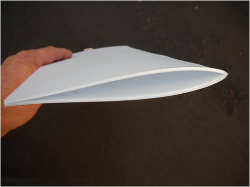Noel Not sure I understand your question. The leading edge is smooth, since it is just a bend in the plastic. The trailing edge is where two flat surfaces come together and are glued in place with CA glue. The trailing edge is rather abrupt, but when you tuck in an aileron tab, it "steps down" the bump and makes it a bit closer to a thin edge. With the type of flying I do (motor assisted most times) that scruffy trailing edge doesn't matter much at all and the speeds I fly are way past soaring speed most of the time. For you to use the blade or wing in a VAWT situation, that would be fine since, to my knowledge, they turn in only one direction, so it would be no different than when used in a HAWT or on a glider wing. An "airfoil" blade on a VAWT creates lift just like when it is used on a plane or on a HAWT and as it speeds up, it's "apparent wind" starts it "flying" and you get even more lift than you would if it were merely immersed in a fluid flow. Of course, if you're using a "symmetrical-section" wing, lift is only determined by angle of attack. If you are interested in the blade creating lift by it's shape, you'll have to bend it into what is called a "Clark-Y" configuration, where the bottom is flat and the airfoil is on one side only. If I've missed the mark here, straighten me out and I'll help if I can. . . . . . Mac Nothing difficult is ever easy! Perhaps better stated in the words of Morgan Freeman, "Where there is no struggle, there is no progress!" Copeville, Texas |