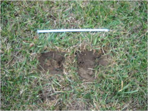 of lawn (to be replaced after the posts are set). That pin lying there is