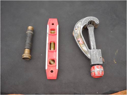 level and a fancy plastic-pipe cutter (I'm a plumber by the way).