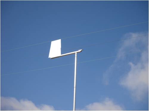 Here it is flying; largest weather vane on my block!