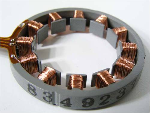 This is a stator out of a computer hard drive. Looks almost exactly like the F&P guts without any cogging iron cores (although they may actually be there, merely hiding under plastic). Still, it's pretty cool that you could save weeks of shop time short-cut by a little creative dumpster diving! Just a thought. Of course, you know what they say about "idle minds"!