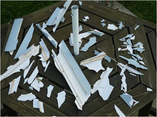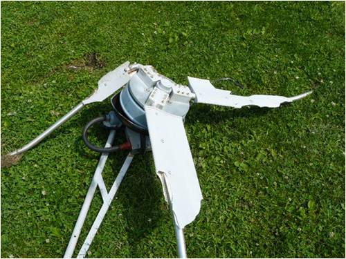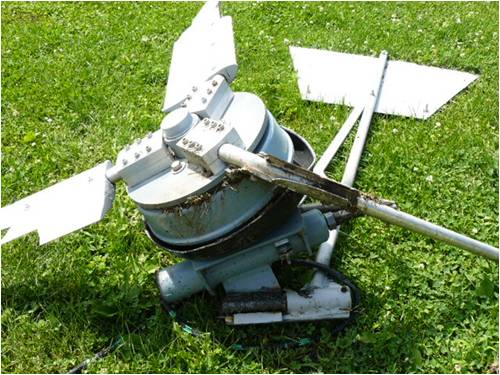 You people would not believe the weather we have had here the last two weeks. Rain, wind, more rain, more wind, winder etc. totally sucks. The misses calls me at work and says (we have a bad storm moving in from the west what should I do with the mill) I tell her (lets not take any chances just pull the switch and shut it down before the storm gets there) She calls me again about 45 minutes later, it sounds like she’s crying (I am like what the f_ _k) she says (I heard this loud BANG and stepped out to investigate, the mill is off the tower and on the ground, but the round thing with the magnets seems to be ok). I get home and start putting together what the hell went wrong. The mill WAS up 47 feet or 14 meters. I had a debris field of about a million bits and pieces of broken PVC that was only east of the tower about 150 to 175 feet in distance. The mill hit the ground (grass, lawn) about 25 feet south of the tower. The misses and the neighbor both confirm that the mill was stopped and or barely spinning before the storm hit full force. Question is how do you get so many small pieces of PVC spread out so far from the tower and only in one direction? Amazingly the tail, alternator, yaw assembly, blade mounting hub are intact. I am very busy with work these days not much time for the mill or other fun things. FEAR not my fellow mill heads my quest to conquer the wind continues on. Jim |