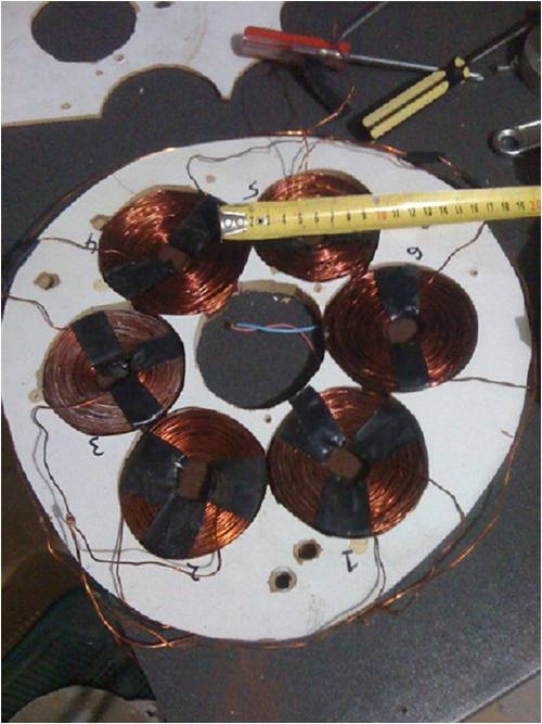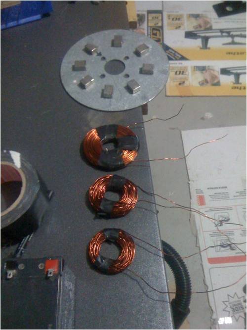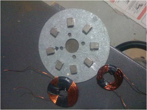 heres a link to another 8 mag 6 coil machine..theres some pics further down the page of that machine ...keep at it and well done salvaging the wire for the experiment http://fieldlines.com/board/index.php?PHPSESSID=344b3b38bae7 192dbb9d2f79a62e1bc3&topic=140030.0 niall |