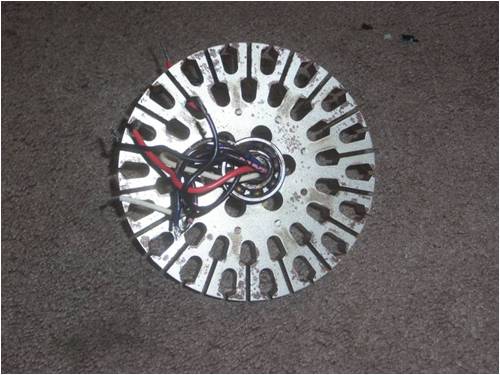 Hello to the masses. As a starter project into my windmill making endeavors, I thought I would try my hand at a ceiling fan and converting it for wind power. I understand that what I want to do will take countless man hours of tedious re-winding and several curse words due to things not working right.... But that’s the fun part! Here I have a dissembled ceiling fan I picked up for 10 bucks at our local Habitat for Humanities location. Nine poles for the high and low speeds so 18 in total. I think that makes it easy to re-wire this for a 3 phase 24v system. I think I will just re-wire the magnet wire with several in hand to reduce the turn count. Now I am not on the up and up for ceiling fans so here is where I am at and stopped after the total 10 min of work I am into this. On the "Top" portion of the ceiling fan housing there is this metal ring stuck in the housing that originally went around all the poles. From what I see I think that needs to come out and that is where magnets will go. I just need to figure out how that comes out whether it needs to be cut or its pressure fitted like the two pieces of the housing where. Any thoughts or comments welcomed. More to come.......
