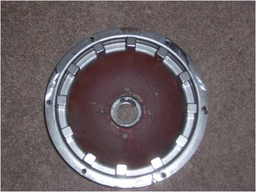 And to boot the lack of gap was without the 1/8" mags. SO I went on and instead of getting new magnets I wanted to modify the case a bit. I have it roughly shaped out and built with a steel ring for the magnets. I do understand that is curently has some balancing issues but that will be corrected later. Here is what I have done so far: