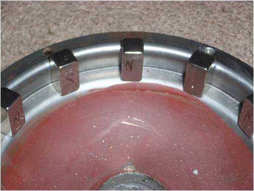 OK here is what I have discovered so far. With the magnets at hand in the configuration I have I find the 20AWG wire is way to thick for any real application here. I wanted to use thicker wire in order to have better amps while still having an overall charging voltage for a 12V battery. 50 turns is as many as I can fit into the small coil spaces. I have tried 6 coils, 9 coils & T.S. every connection in that stator and can not get more than 2.7V at 400 mili Amp. My next step is to go back to the original wire and I will try 250 wraps with 2 in hand. We will see how that goes next. Will it work? Well lick your fingers and touch the two leeds. PZZZZZZZT |