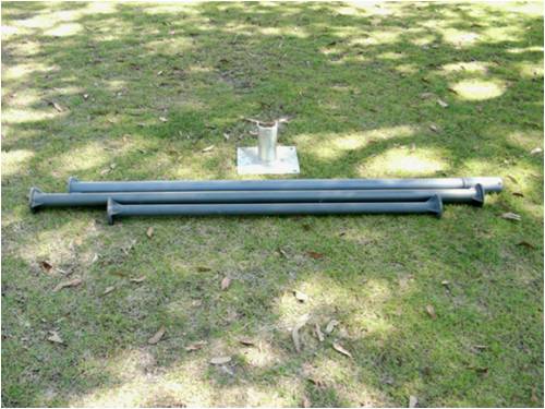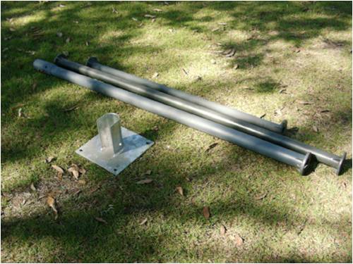 Note the heavy duty base that the mast tilts on, it is designed to be mounted on a concrete base and has the base bolts included in the kit. The base plate is 17mm thick and is galvanized to prevent corrosion on this critical component.