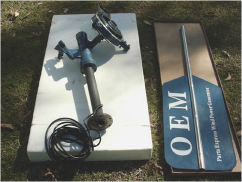 The blades are the time and result proven extruded aluminum blades, mounted on steel tubes that spigot into the sockets around the alternator.