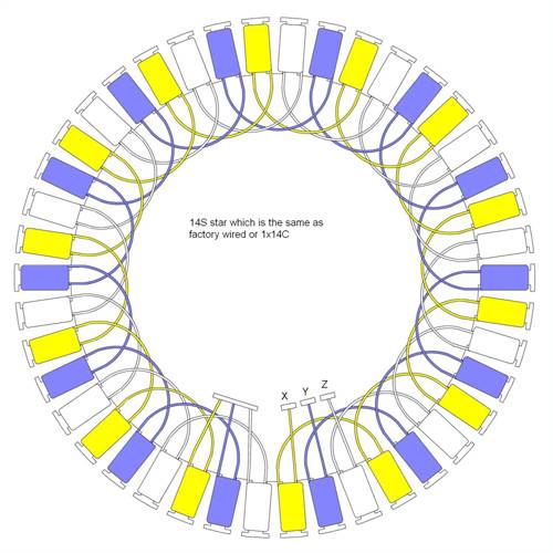 Can anyone in the know check that I have this wiring correct please? 7 poles in series and 2 parallel – delta (7S2P delta) and the other stator is ment to be 14S Star. |