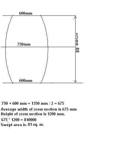 Hi everyone, does anyone know how to work out swept area for my VAWT. I've included a picture. there are 3 blades which, when flat measure 1200mm X 100mm. The diameter at fixing points is 600mm and in the middle is 750mm. I cant try it out because when making the 'C' frame I forgot to allow for the extension of the blades beyond the fixing point, anyway no wind today. jasmine |