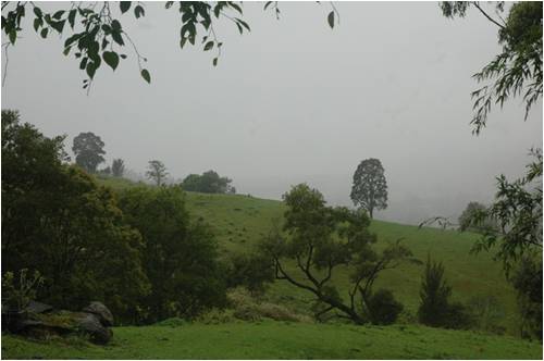 Team, big salutations, you guys are legends !!! My old mate got me a set of those extruded ali blades (thanks Phill for the extra endcaps !!). I did the DXF via laser and MIG and the machine lives: da machine: Have just completed a 7 phase F&P rewire to suit the new magnet hub and it pumps out 50 watt (That's 12 volts @ 4 - 5 amps folks)with a hand turn. Very pleased !! Now need some heavier duty U bolts and a couple of fastening fine tunings: I tried the blades out on the verandah with a dodgy mounting, no load, and a mild breeze. I won't do it again ! It was scary to stop, as in sailing, the apparent wind kicks in, I could SEE it accelerating !!!. That profile is awesome and I reckon it will develop some serious grunt !! Thanks to all the members for sharing your years of research and experience in this !! The weather has just turned to shyte here, no wind, lotsa rain, good for country ..... view from the verandah this AM, where did my mountains go ? ...... Cheers all OMM |