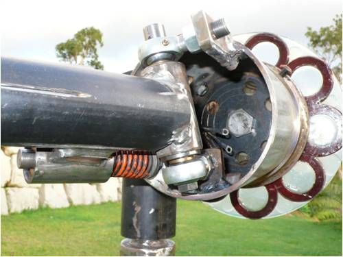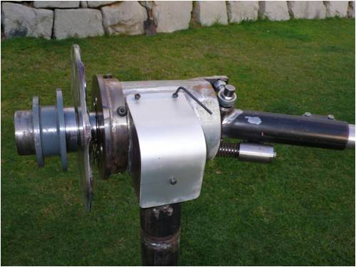 The tail pivot is mounted on two adjustable rod ends which allow the side and back adjustment or on a X & Y axis , this hopfully will allow me to set up a very smooth furl as the blades turn out of the wind .