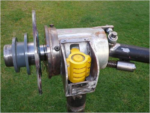 The Spring over Hydraulic tail stop damper allows the tail go to a maxium tail off-set in light wind which should allow the blades to be slightly overcentre of the blade off-set force and then become square and balance the wind in 3 to 5 m/s untill the blade offset force then then takes over and startes to furl , the damper will the stop the sudden shocks from wind speed and direction changes .