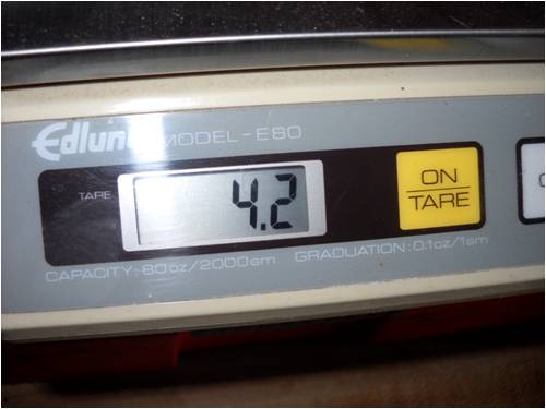That's 4.2 ounces for a 4" x 24" blade with spar. Due to different
