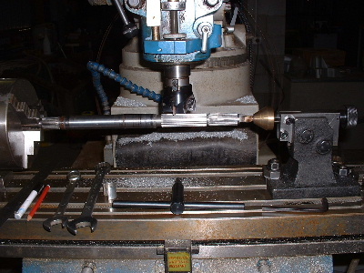 No, the standard F&P block is too short. My cast block spreads the bearings apart further than the F&P block. Bearing to bearing length on my cast block is 155mm. The F&P block could be joined though inside a piece of steel pipe to make up the length. I found a picture of cutting the spline on the mill. May be of some help to someone trying to do their own. And some other pictures I probably have posted somewhere before. Trev @ drivebynature.com |