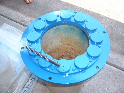 ..............and fillm too has posted on his AXFX. I must give all credit to Gordon though, for the info and help to get an AXFX on the go. Gordon's work, experiments & experience is very valuable. It is what I have learned from Gordon that got me excited, more than a year ago, about making one. Thanks heaps Gordon. Well, I have finished off the fitting of the magnets. Getting them apart is a big fight. Marcy helped me a lot to get them apart. When we were down to the last 2, and had no ply between them, I had to try the vice (thanks Glenn). But the vice is made of steel and so you need to be very careful because these magnets have the power to squash your fingers (experience says, it hurts too). With one clamped you can slide the other one off. It is easier to get them off the steel vice than off another magnet. The steel ring is machined to the right diameter for the magnets, so just had to be level on the outside and spaced equally between. The magnets can be slid on the steel or bumped along gently with a piece of wood. I used an aluminium/plastic soft hammer. The alloy is not affected with the magnetic force. the washers added with the wood spacers are 316 stainless steel which is also not affected. But my vernier calipers (stainless steel) are. Sure gives you a fright when they are pulled from your hand and you are not expecting it. My watch is stainless steel, and not affected, except the magnets stop it working while they are close. All in place, then are just glued with super glue. With paint on, I went to work on the next bit, drill holes to hold the stator in place. I couldn't remember what drill I used, and habit, just check anyway. I very quickly realized this was not a good thing to do at this point in time. The drill bit was pulled from my hand cutting 2 fingers, not bad thankfully. Anyhow, its the pain that hurts, doesn't hurt anymore when the pain goes away. Just goes to show, you can't be too careful. After 5 layers of paint...I hate rust.....I decided to put some silicon around the bolts to ensure the moisture can't start rusting under the bolts. The paint is taking too long to harden up too, so I don't intend to paint again to cover up the brown silicon. Cleaned up the stator and gave it a coat of resin all over, including the coils. Wired the 3 coils in series. These are all external for checking voltage once I get it all set up. I have put together a new set of blades and balanced them. Getting closer now. Trev @ drivebynature.com |