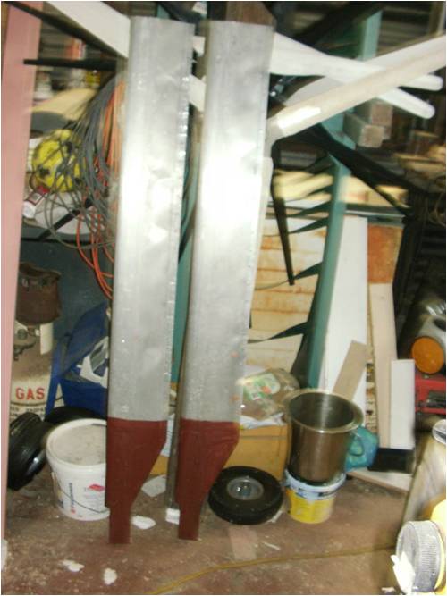 I am using a set of old gyroplane rotor blades that I inherited from the gyro school we had here many years ago, they had a ground strike so couldn't be used on the plane any more. I cut them down to 4 meters diameter and am aiming for a furling speed of 350 rpm in 15 ms wind.