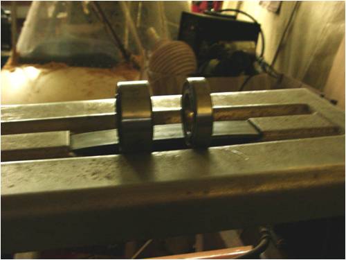 You can see the extra width of the bearing, it is 10 mm wider than the original bearing. This meant turning out the front housing bearing seat 10 mm deeper to accommodate it.