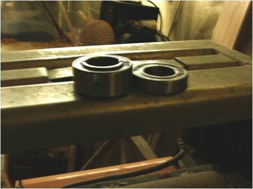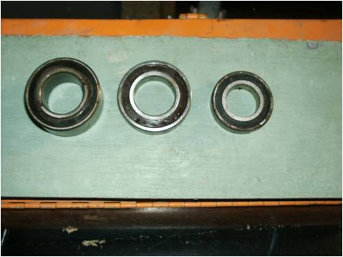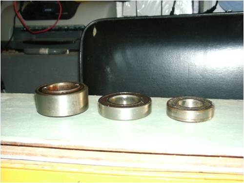 The bearing on the right hand side is the bearing from a Fisher and Pykel 100 series motor, the middle bearing is the original LG bearing and the left hand side one is the heavy duty twin race bearing I have fitted.