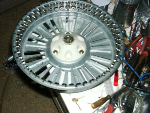 This a quite robust unit with good size bearings and a steel rotor with 48 magnets of the curved ceramic type, these I have removed by heating the outer rim with a electric heat gun to break the adhesion of the glue, they came out easily with a box cutter blade slipped in behind them to break the bond then a screw driver to pop them out, I didn't even break one, miracle for me.