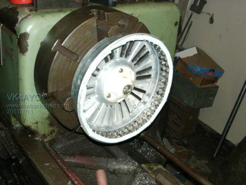 setting in the magnets in epoxy was a bit of a difficult contract as the epoxy kept creeping to the low side and would have put the rotor out of balance.