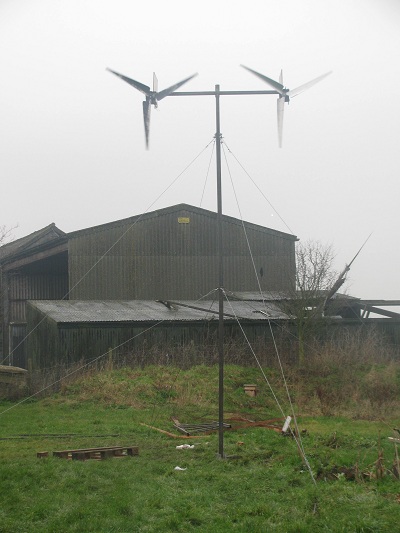 Built myself a new turbine from 2 old 24 volt motors, just got it up and running, havent cabled it up properly or fixed it up to an amp meter , just trying to get to grips with building towers first , this one is only about 25 feet tall but I am going to extend it to 35 feet this weekend and get some proper cable hopefully I can post some figures up.