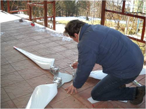 The big difference between wooden blades and new blades is the start-up wind speed(about 0,5m/s) and power efficiency The airfoil consists in two NACA type and one S type profile. The major problem was to interpolate the profiles in order to reach maximum efficiency. The maximum estimated power tested at INCAS (The Romanian National Institute for Aerospace Research) was about 2.8-3kW. For the moment I can not give more details, I am thinking to get patent for the type of blades. Sorry for my English, you understand why. |