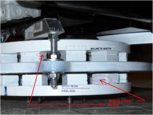 Hy Bryan, Thank you for your suggestions. The new magnets(second row) are glued on the old magnets with Bison Epoxy Metal that has a 160kgf/sqcm bond strength. http://www.bison.net/US/en/view.do?UID=af993e0fc2c7dd2dc07c0 4 http://www.bison.net/upload/af993e0fc2c7dd2dc07c06.pdf The first row of magnets are “buried” about 5mm in epoxy. As seen here http://www.windgenkits.com/video4.htm the magnets are only glued on the disk So, for the second row of magnets I adapted that solution. I hope will be no problems. Regarding the anticorrosion protection, the magnets are nickel-coated. I’ve made some tests with a similar magnet , outside in the rain, and after a month of very bad weather and frost there was no rust spots on it. Anyway, the height of the tower allows supervision and maintenance works. Any recommendations or observations from old experienced persons in windmills construction, is welcome. You have a modified picture with details I hope everybody understand my ideas, I am NOT a native English speaker.