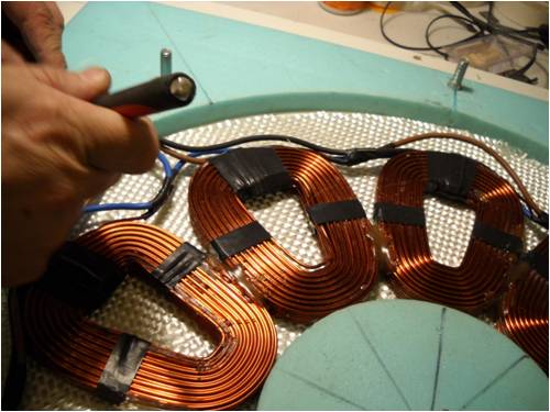 Hello all, This is my new generator for the blades. 60x30x15 magnets and the coils 88 turns 2mm wire diameter. Tomorrow I'll start to mount it. Let's see what it can do!! |