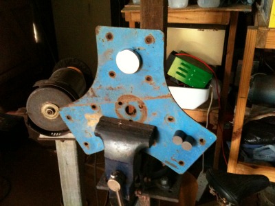 I stuck the magnets on some 3mm plate. In the pic you can see a single 50mm neo N50 magnet and two of the ferrite magnets side by side.
