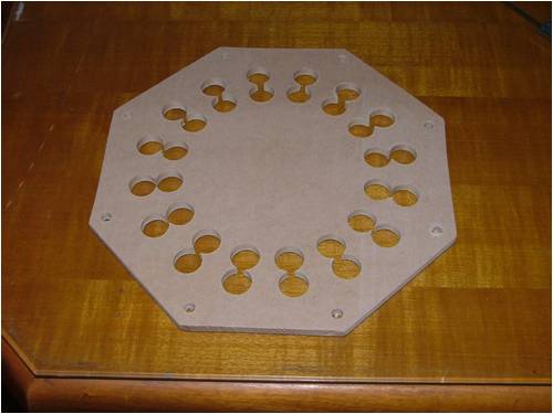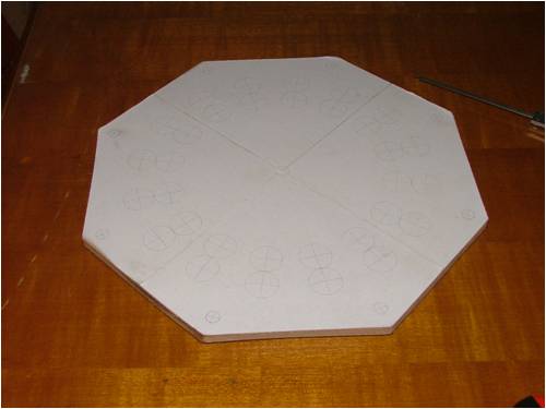 This morning I made the magnet locating jig. Printed out part of the cad drawing at full size and cut into sections, it was too big to fit on one sheet. Lightly glued in place and then center punched the holes. In hindsight I didn't need to glue at all, some tape would have worked, just to hold the paper in place while I center punched the holes. Finished jig, holes drilled. The magnets are 22mm diameter, and I just happened to have a 22mm wood bit in the tool box. Next up are the coil formers. Glenn The best time to plant a tree was twenty years ago, the second best time is right now. JAQ |
