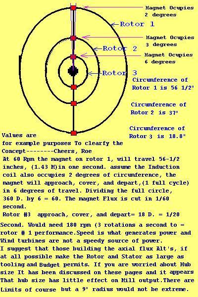 This Link is an earlier post on this Idea. After reading it again I see confusion in the Comparative Section. For this to make sense, Numbers must be placed for a F&P HAWT to get the picture of how much quicker this large rotor cuts the Mag field in the same wind.