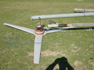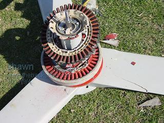 I decided to give my trusty dual f&p a tidy up its been hummin all winter and the blades needed a little new paint on there leading edge and when I put it up I only used the old berings that were in the washing machine so I thought its about time to have a looksee it was still going fine and i have been very happy with it. was bringing it down slowly it got about half way and.... DOWN IT FELL
