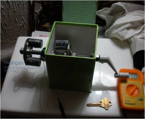 OK, looking at the photo, is the coil around the threaded bar, or out to one side? If its around the threaded bar, then the wires are in direction of rotation, so the magnets are passing along the wire, not across them. As Mac pointed out above, the magnet needs to pass over the wires at 90 deg to the wire. Glenn The best time to plant a tree was twenty years ago, the second best time is right now. JAQ |