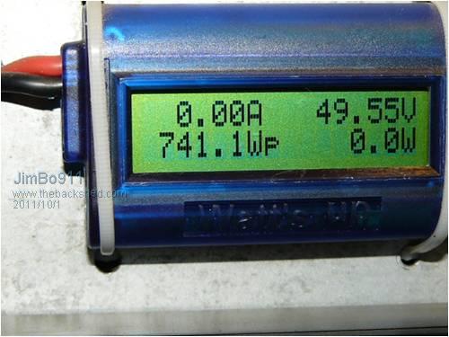 My doc wattson meter tells the story. 741 Wp and 11.73Ap At full furl she pushing out about 640 watts. I could crack it up a bit but we all know what happens when we sass mother nature