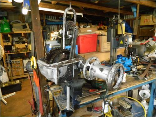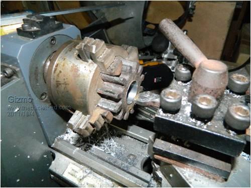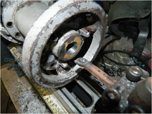 I then shaped the new 24mm shafts end into a basic cutting tool and reamed out the back bearings. The white metal is like lead, easy to cut.