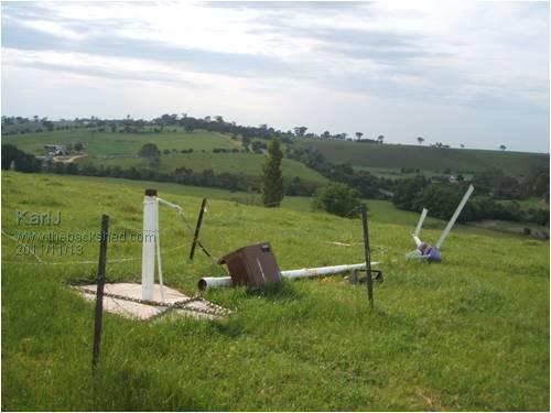 Hahahah,,, laughing my arse off -- Mac --maybe it froze == Bloody hell hell ,Mac , he's in hell's country -never gets below 40 C .. We rarely see that white stuff on the ground ... Seriously .,though , I'm wondering how the hell it jumped out of that spiggot when the guys should have been tensioning it downwards. Dunno, he'll have to tell us more --me thinks.. froze ---hahah I wish Bruce. Bushboy |