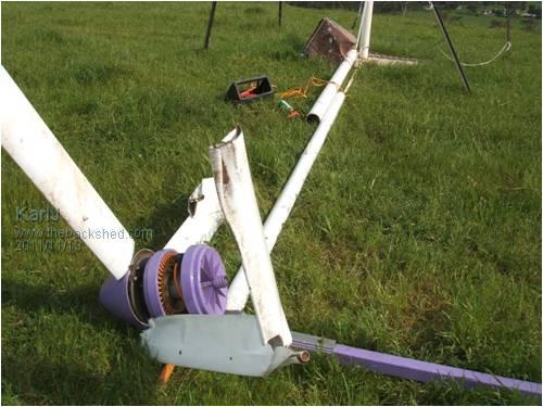 I think this point was made very clear at the time the tower was erected. If anyone would like a recap new farm mill ready to go The real question is what happens now? Is a rebuild job on the damaged generator and tower a viable option or is it to far gone to repair? Given Karl's solar guru status extra panels would be a very attractive option.(No,I am not just buttering him up because I'm in the market for some panels )