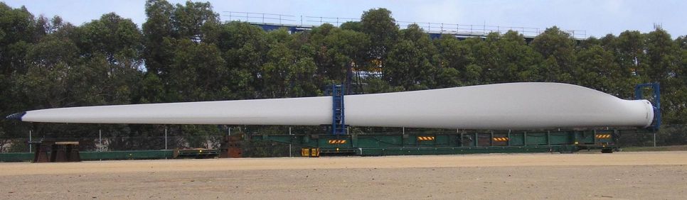 HI all i was recently on hols down at Portland Vic and noticed these two massive turbine blades sitting in a landforming yard, didn't know what they were for a few seconds due to the sheer size, mum thought they jumbo jet wings! They are 29 metres long weigh around 8 tons and are made of fibreglass. The rotor wieght combined 30 tons the gen nacelle wieghs 50 tons and the 50m high tubular steel tower wieghs around 80 ton. They are presumably destined for the nearby Codrington/Yambuk wind farm where there are 34 1.5 MW turbines. Having never seen turbines or a windfarm of that size before i was pretty inspired. Quite amazing to see these things in action up close! I dont know why people kick up a stink about the look of them, I reckon they look better and much more exciting than a coal fired power station!
