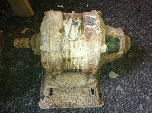 I know I have not finished my 2nd windmill project, but I thought I would start thinking about my 3rd. I’m not even sure it is possible yet. I have had this motor for several years & not sure it even works. But thought I would give it a try. The plan is to take it apart & see if I can get it working again. The only thing I know about it is, it is a Westinghouse & weighs maybe 150-200 pounds. Please let me know if you guys have any knowledge about this motor & if it is even worthwhile diving into it. Here are the pics.