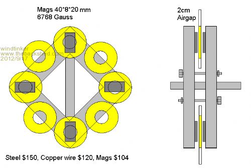 I will be doing some high voltage experiments, driving a ignition coil(ac 1amp makes about 1600volt, would like 20k :) ). I don't mind building a axial-flux and have read otherpowers howto on them and Dan B book, just need some idea on coils and mags data if going that way.