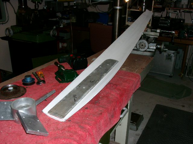 The leading edge is "bowed" of course to get the taper and twist,. this is where I shaped the outside edge to create the aerofoil section. I reckon your router cutter would be good at the finishing stage ,but initally ,you have to profile this leading edge with the cutter ,followed by coarse sanding .